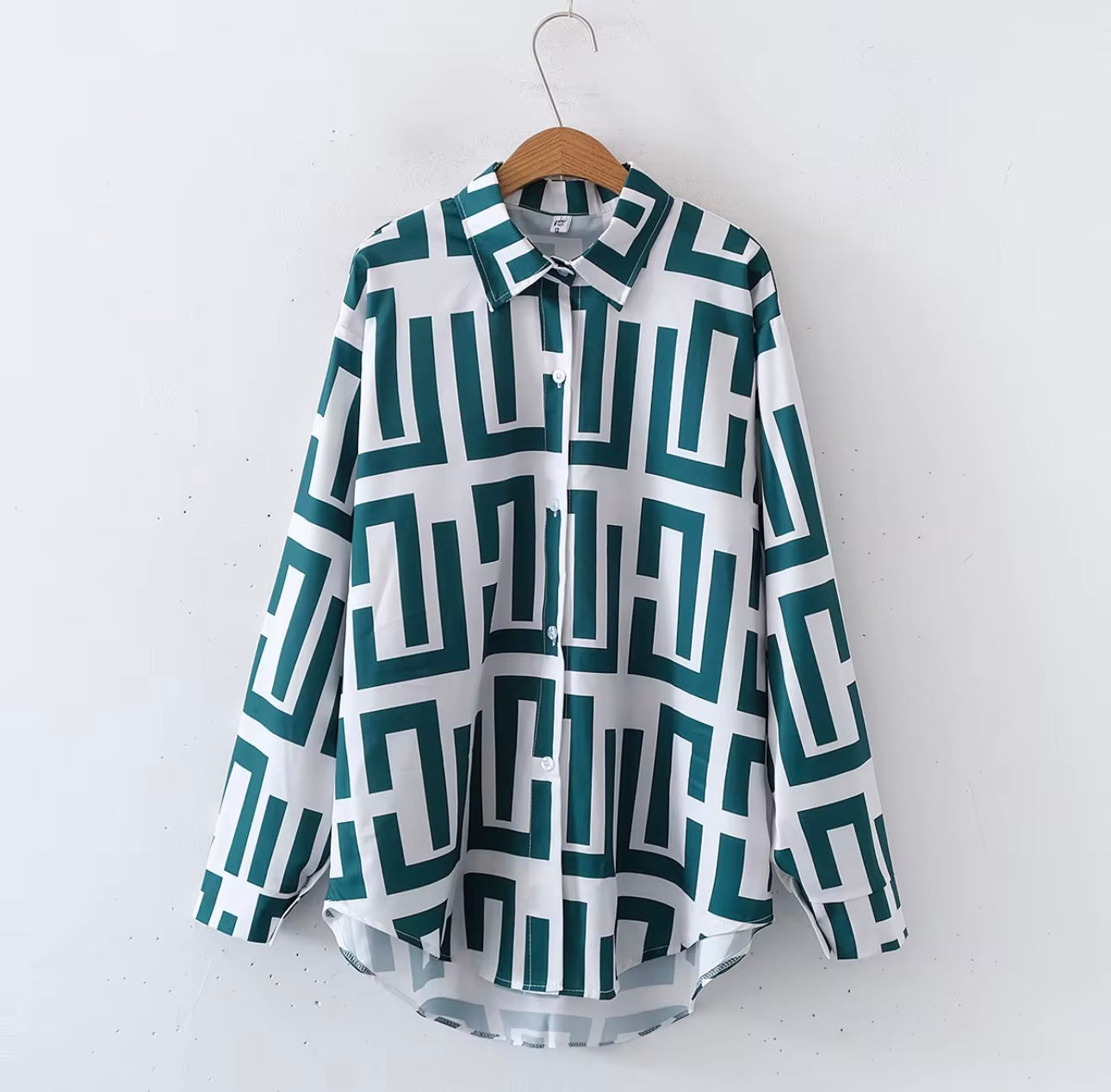 Levoro™ Women’s Geometric Pattern Long Sleeve Shirt – Coastal Elegance